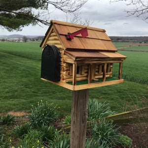 Amish Made Wooden Mailbox | Log Cabin with Porch | Amish Made | CL620